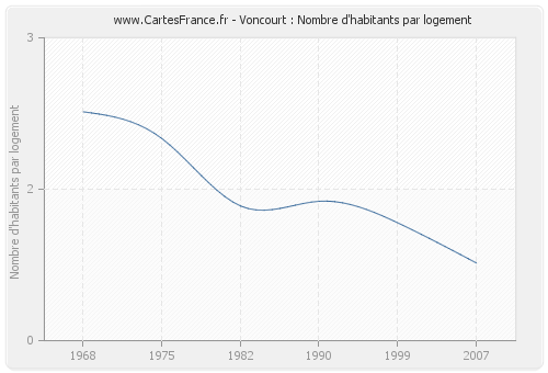 - Nombre d'habitants moyen par logement de Voncourt en 2007 : 0,77
