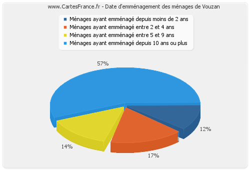 - Nombre de ménages de Vouzan ayant emménagé depuis 10 ans ou plus : 154