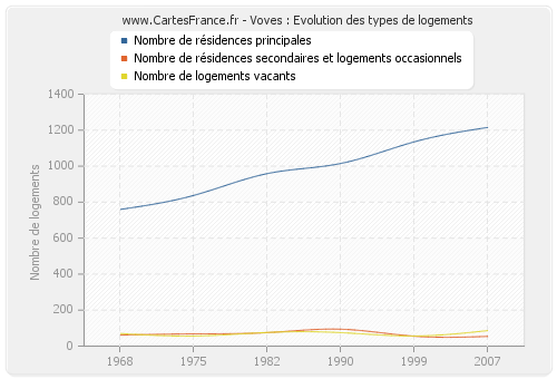 Historique du nombre de logements de Voves de 1968 à 2007 :