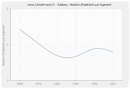 - Nombre d'habitants moyen par logement de Vulaines en 2007 : 1,79