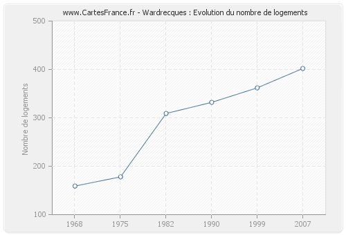 Historique du nombre de logements de Wardrecques de 1968 à 2007 :