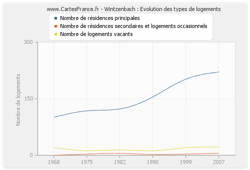 - Nombre de résidences principales de Wintzenbach en 2007 : 221