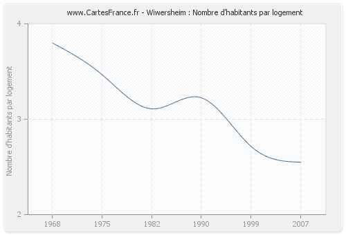 - Nombre d'habitants moyen par logement de Wiwersheim en 2007 : 2,55