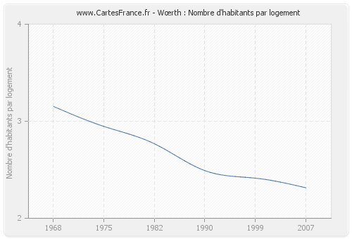 - Nombre d'habitants moyen par logement de Wœrth en 2007 : 2,31