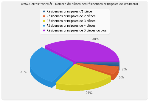 - Nombre de résidences principales de Woincourt de cinq pièces et plus : 213