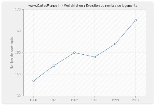 Historique du nombre de logements de Wolfskirchen de 1968 à 2007 :