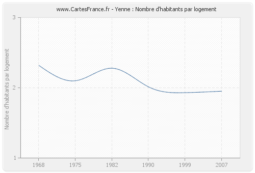 - Nombre d'habitants moyen par logement de Yenne en 2007 : 1,95