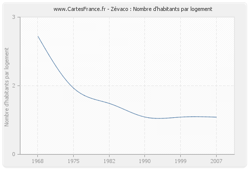 - Nombre d'habitants moyen par logement de Zévaco en 1968 : 2,58