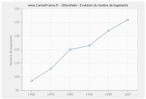 Historique du nombre de logements de Zittersheim de 1968 à 2007 :