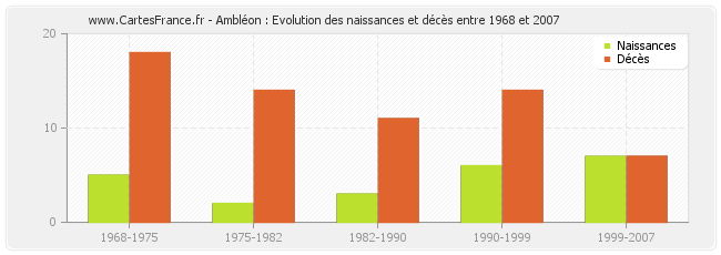 Ambléon : évolution des naissances et décès de 1968 à 2007