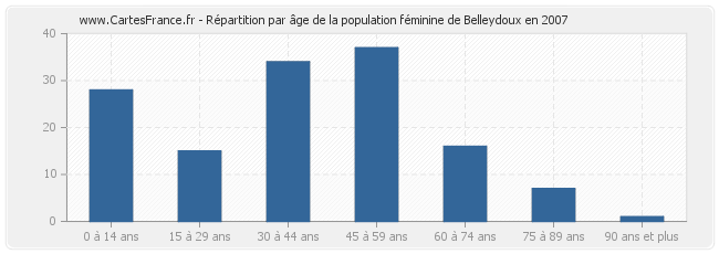 - Femmes de 45 à 59 ans habitant Belleydoux : 37