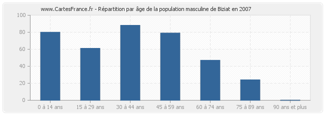 Répartition de la population masculine de Biziat par âge en 2007 :