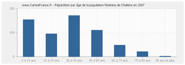 Répartition de la population féminine de Chaleins par âge en 2007 :