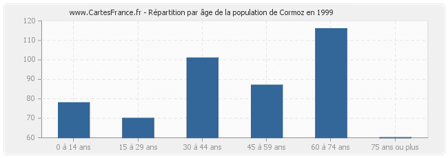 - Population de Cormoz de 60 à 74 ans : 116 habitants