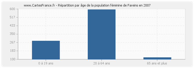 Répartition de la population féminine de Fareins par âge en 2007 :