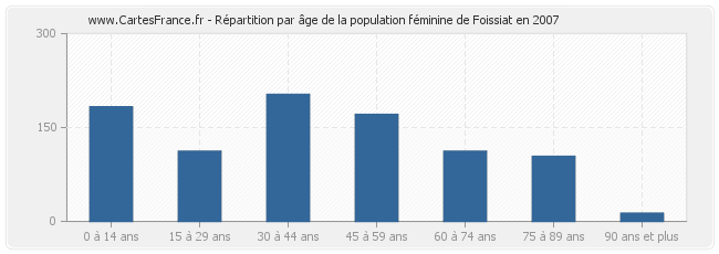 Répartition de la population féminine de Foissiat par âge en 2007 :