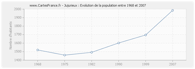 La population de Jujurieux était de 1 986 habitants en 2007, 1 696 habitants en 1999, 1 602 habitants en 1990, 1 492 habitants en 1982, 1 459 habitants en 1975 et 1 520 habitants en 1968.