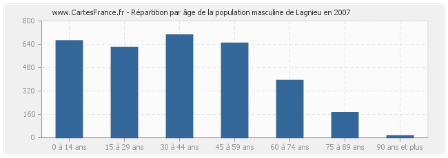 Répartition de la population masculine de Lagnieu par âge en 2007 :