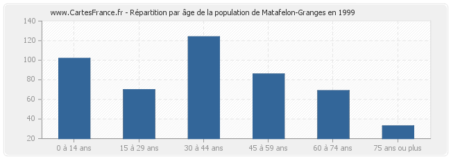 - Population de Matafelon-Granges de 30 à 44 ans : 124 habitants