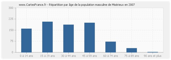 Répartition de la population masculine de Misérieux par âge en 2007 :