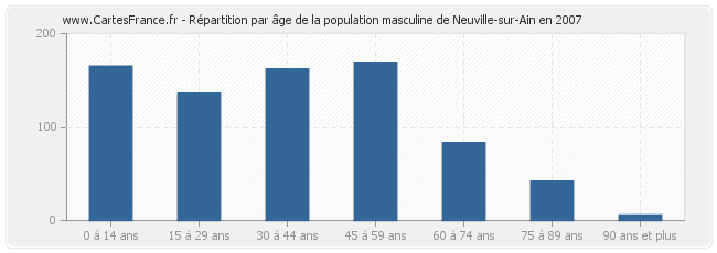 Répartition de la population masculine de Neuville-sur-Ain par âge en 2007 :
