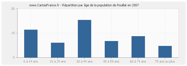 - Population de Pouillat de 30 à 44 ans : 23 habitants