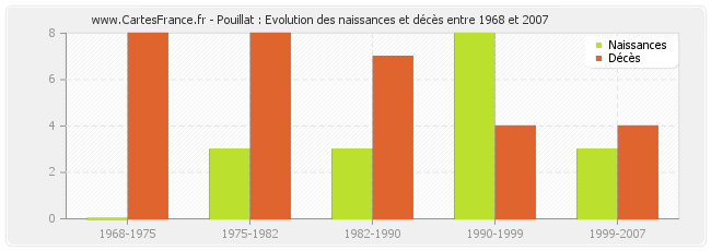 Pouillat : évolution des naissances et décès de 1968 à 2007