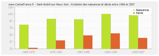 Saint-André-sur-Vieux-Jonc : évolution des naissances et décès de 1968 à 2007