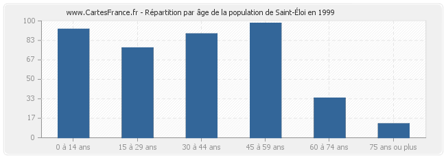 Répartition de la population de Saint-Éloi par âge en 1999 :