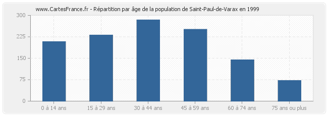 - Population de Saint-Paul-de-Varax de 30 à 44 ans : 284 habitants