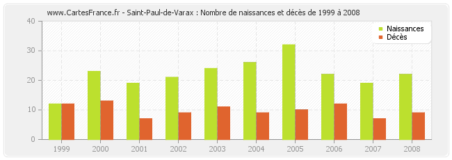 - Saint-Paul-de-Varax en 2008 : 22 naissances et 9 décès