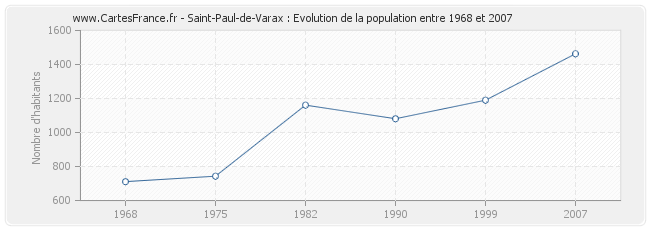 La population de Saint-Paul-de-Varax était de 1 463 habitants en 2007, 1 190 habitants en 1999, 1 081 habitants en 1990, 1 161 habitants en 1982, 743 habitants en 1975 et 711 habitants en 1968.