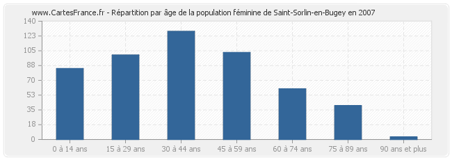 Répartition de la population féminine de Saint-Sorlin-en-Bugey par âge en 2007 :