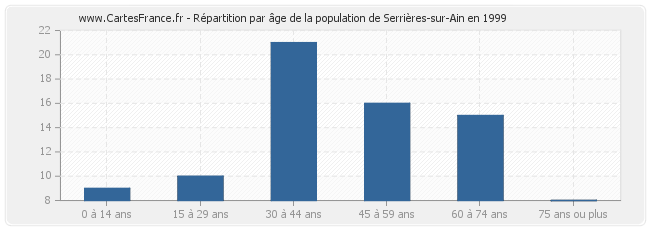 - Population de Serrières-sur-Ain de 30 à 44 ans : 21 habitants