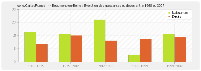 Beaumont-en-Beine : évolution des naissances et décès de 1968 à 2007