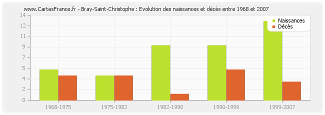 Bray-Saint-Christophe : évolution des naissances et décès de 1968 à 2007