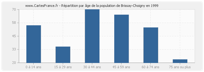 - Population de Brissay-Choigny de 30 à 44 ans : 70 habitants