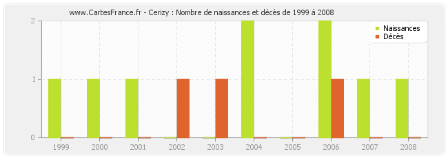 - Cerizy en 2008 : 1 naissances et 0 décès