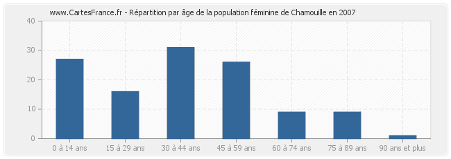 Répartition de la population féminine de Chamouille par âge en 2007 :