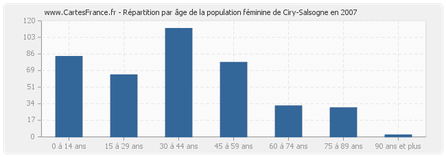 Répartition de la population féminine de Ciry-Salsogne par âge en 2007 :