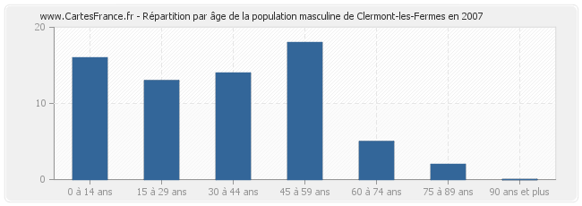 Répartition de la population masculine de Clermont-les-Fermes par âge en 2007 :