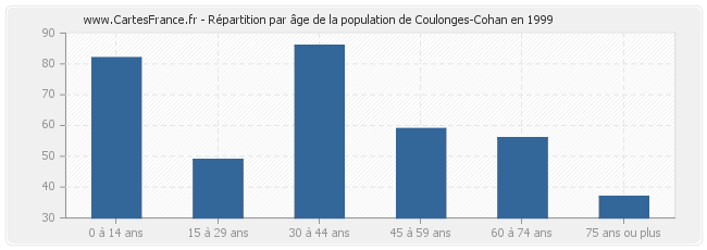 - Population de Coulonges-Cohan de 30 à 44 ans : 86 habitants