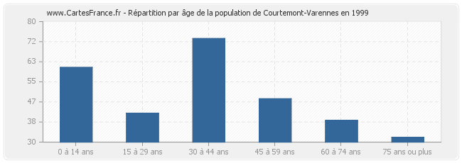 - Population de Courtemont-Varennes de 30 à 44 ans : 73 habitants