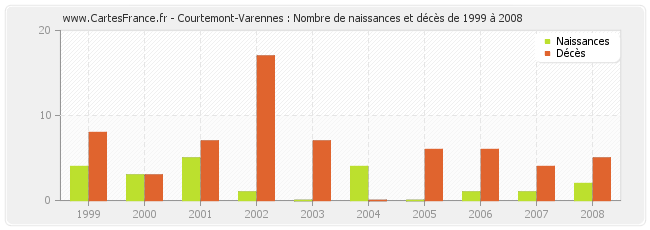 Courtemont-Varennes : naissances et décès de 1999 à 2008