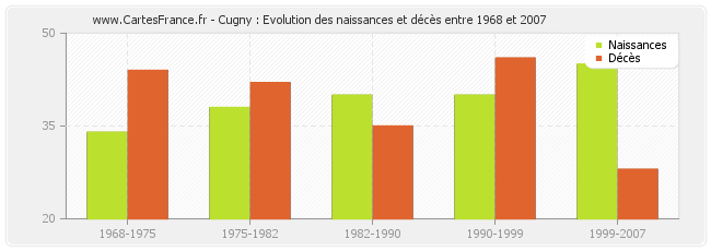 Cugny : évolution des naissances et décès de 1968 à 2007
