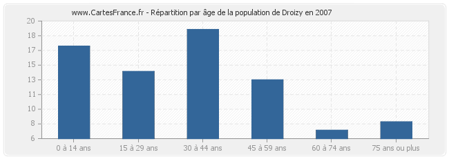 - Population de Droizy de 15 à 29 ans : 14 habitants