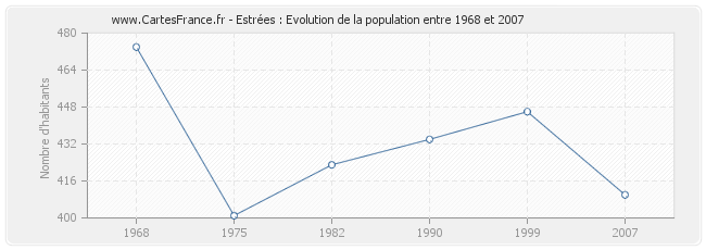 La population d'Estrées était de 410 habitants en 2007, 446 habitants en 1999, 434 habitants en 1990, 423 habitants en 1982, 401 habitants en 1975 et 474 habitants en 1968.