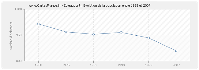 La population d'Étréaupont était de 859 habitants en 2007, 934 habitants en 1999, 966 habitants en 1990, 955 habitants en 1982, 969 habitants en 1975 et 1 015 habitants en 1968.