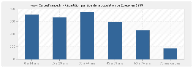 - Population d'Étreux de 30 à 44 ans : 374 habitants