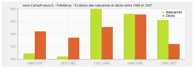 Folembray : évolution des naissances et décès de 1968 à 2007